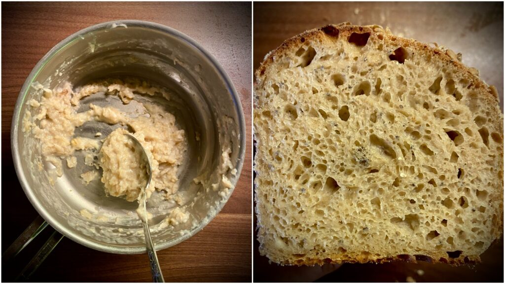 Resultatet blir et ekstra saftig brød, med god hjelp fra havregrøten.